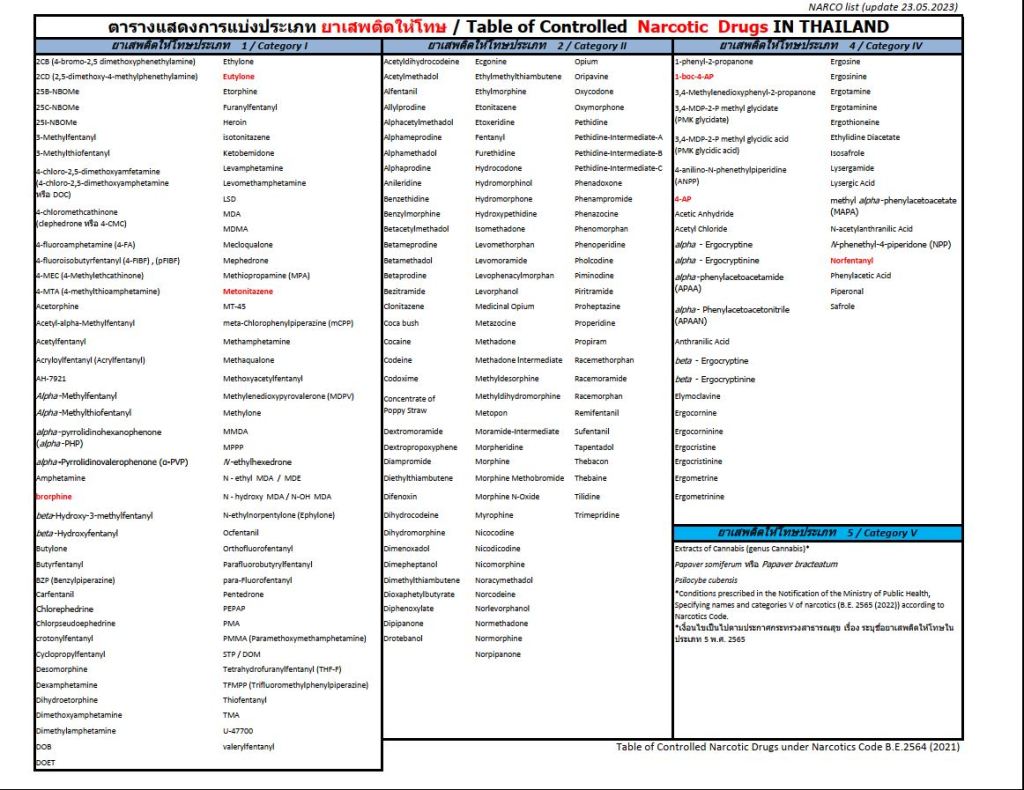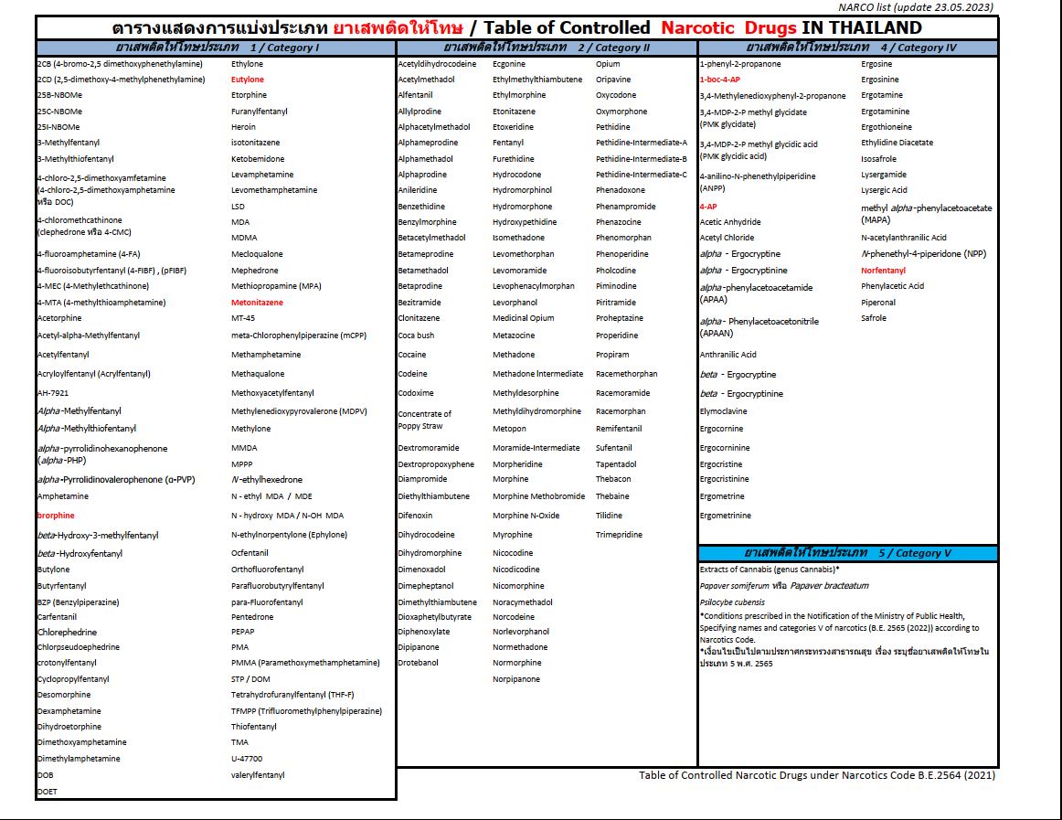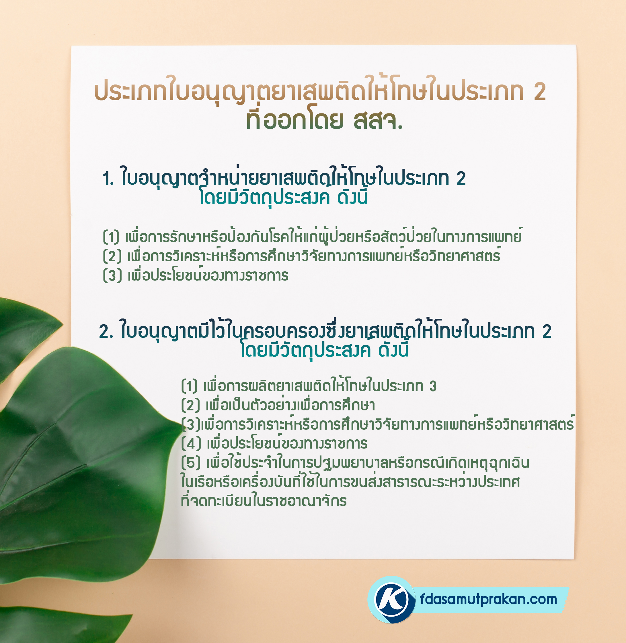 ตารางแบ่งประเภทยาเสพติดให้โทษ (เฉพาะประเภทที่ 2 ต้องขอใบอนุญาตที่ สสจ.)