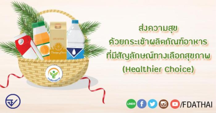 อย.รณรงค์ให้ประชาชนที่ต้องการซื้อกระเช้าของขวัญช่วงเทศกาลปีใหม่ให้หันมาซื้อกระเช้าที่มีสัญลักษณ์โภชนาการทางเลือกสุขภาพ (Healthier Choice) เพื่อสุขภาพที่ดีของผู้รับ โดย อย. ขอแนะนำการเลือกซื้อกระเช้าหรือจัดกระเช้าด้วยตนเอง ดังนี้