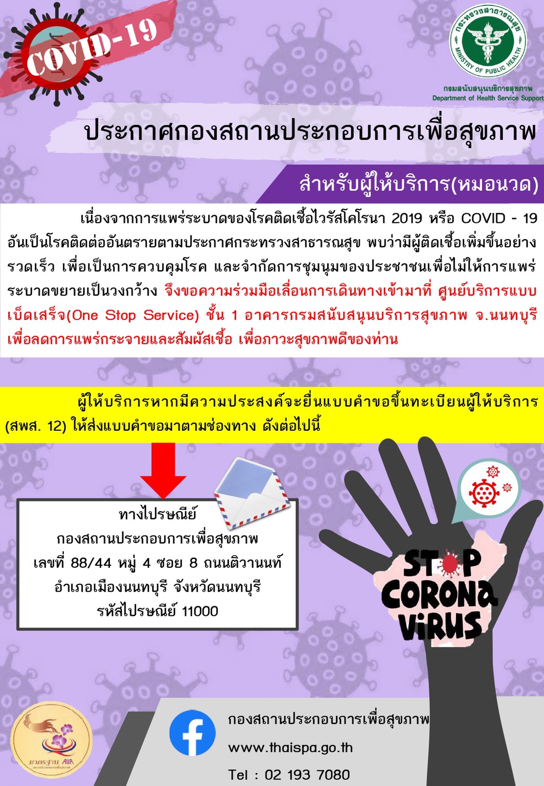 ทั้งนี้ งดการให้บริการโดยการพบเจ้าหน้าที่โดยตรง